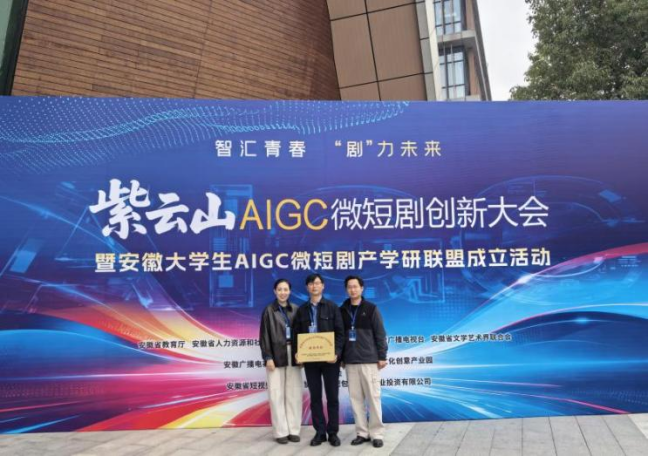 3月24日上午,安徽大学生AIGC微短剧产学研联盟成立大会在合肥市隆重举行。省委常委、宣传部部长钱三雄出席会议并宣布“安徽大学生AIGC微短剧产学研联盟”成立。91天堂 代大为、陈旭、蔡洪建三位老师受邀出席大会和授牌仪式。